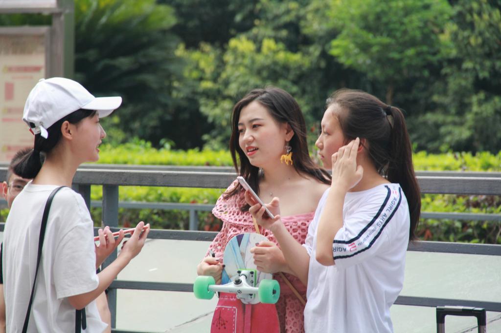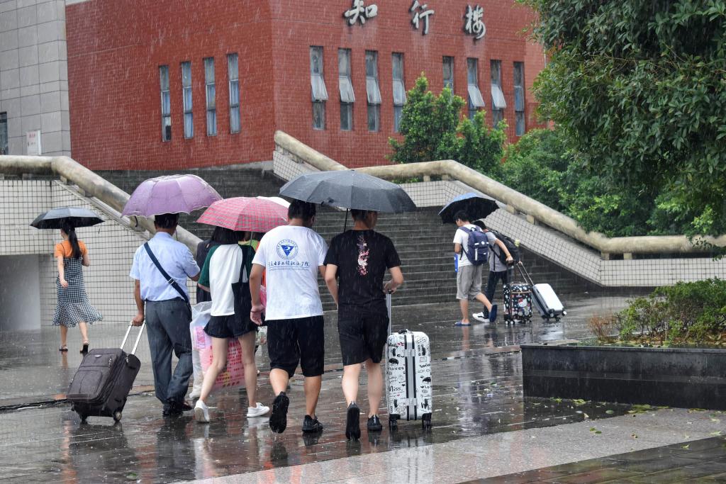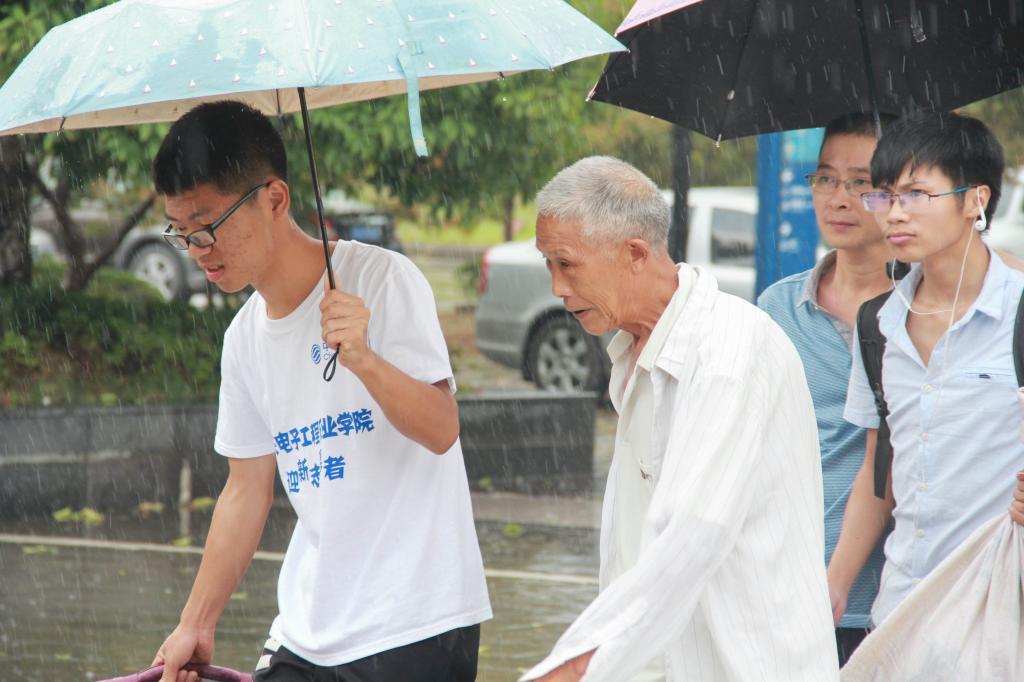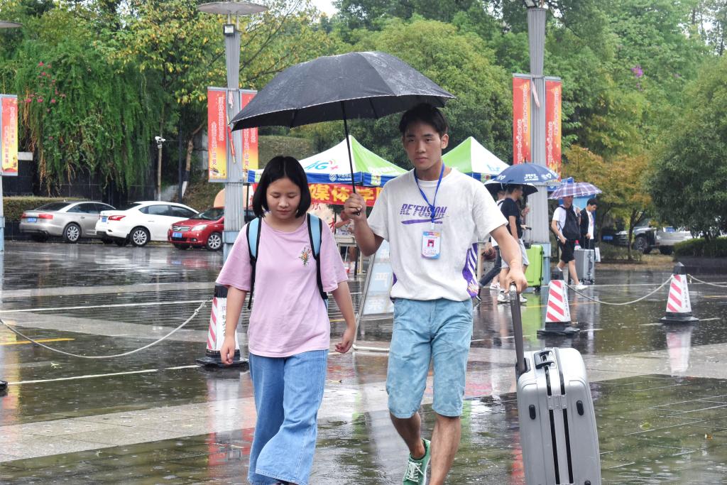 午饭过后,一场暴雨为奔走在校园内的新同学和志愿者带来一丝清凉,洗去了身上的热气,凉爽的气温使他们更加的有活力。老师和志愿者们已经连续工作两天,但他们依旧坚守在迎新工作的一线,引导新生们完成报道注册、寝室分配等,大家都紧张而又有条不紊的工作着。