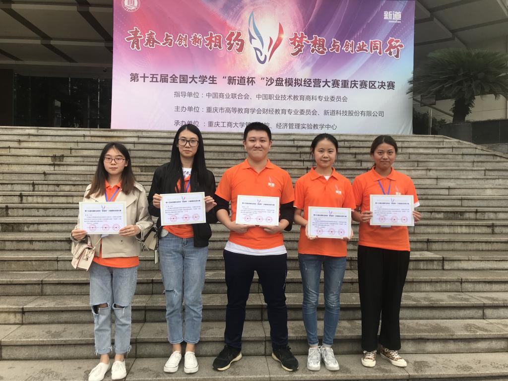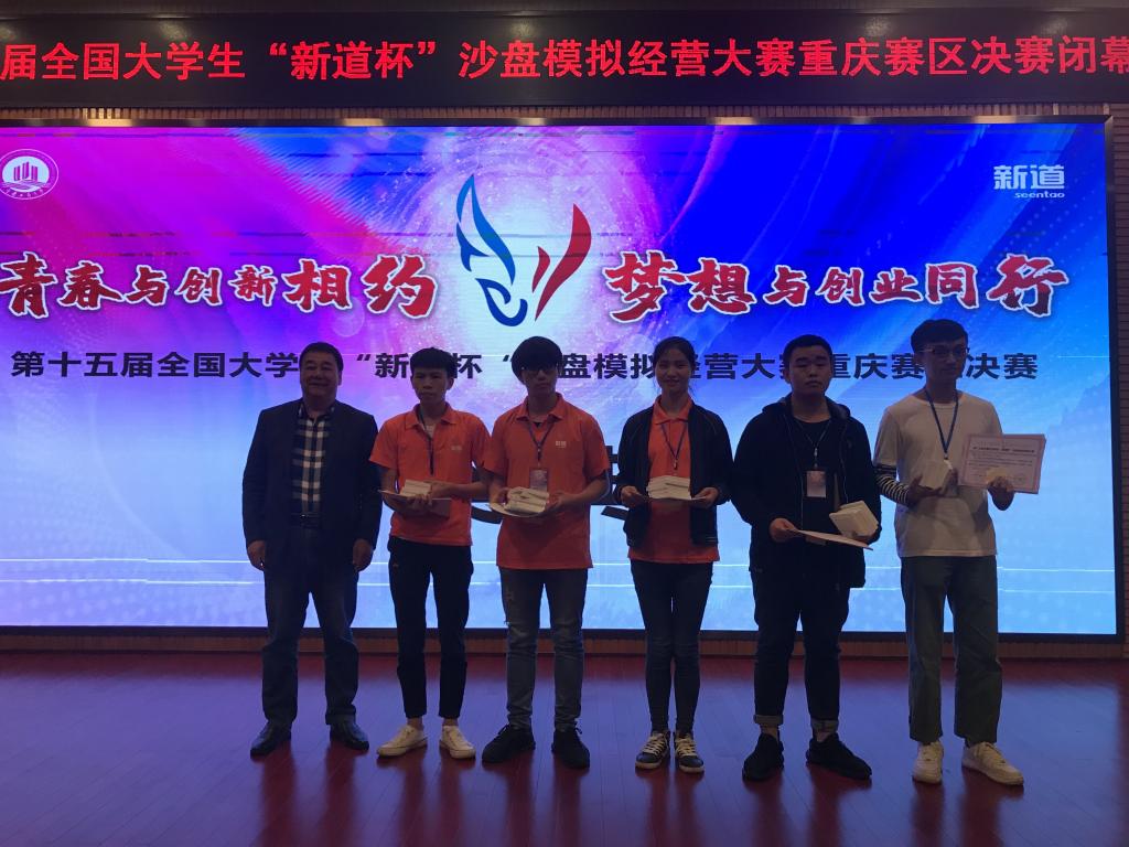 第十五届全国大学生“新道杯”沙盘模拟经营大赛重庆赛区决赛于2019年5月29日-30日在重庆工商大学举行。我校mksports恩波利王珞老师指导的付茂祥、王结林、戴劲、游鑫、苟慕寒代表队、赵小刚老师指导的王丽、秦宇东、蔡倩、王倩、漆亚男代表队分别获得决赛一等奖和三等奖,创造了参加“新道杯”沙盘模拟经营大赛历来最好成绩。