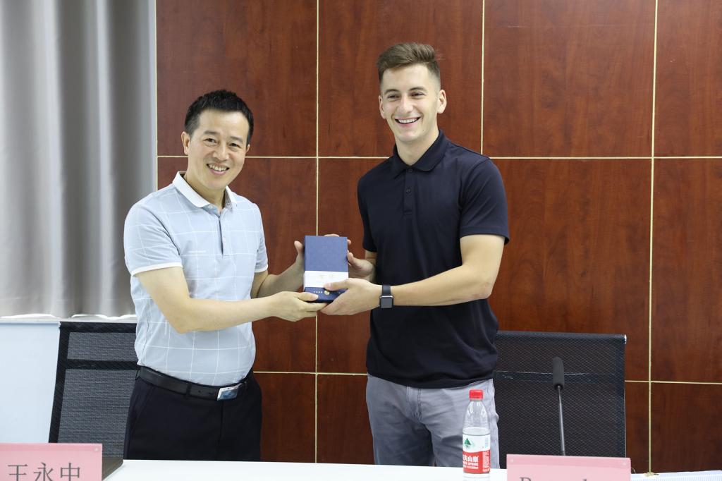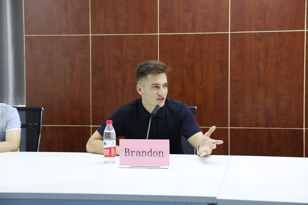 2019年7月18日上午10:00,mksports恩波利在教学楼10-404举办欢送美国志愿者Brandon交流座谈会。