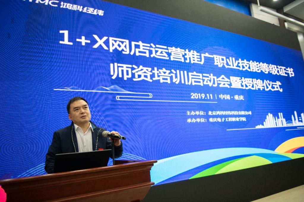 2019年11月13日,1+X网店运营推广职业技能等级证书师资培训(重庆站)启动暨西部师资培训基地授牌仪式在我校举行,来自全国17个省市自治区94余高中职学校的175名参训教师,以及网店运营推广职业技能等级证书培训讲师参加了会议,1+X网店运营推广职业技能等级证书西部院校院长系主任协作会的33名二级学院院长/系主任也应邀参加。会议由该证书的评价组织—北京鸿科经纬科技有限公司主办,重庆电子工程职业学院副校长龚小勇主持。