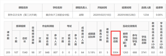 自2月17日正式开课以来,短短两周时间已有17所高校共计1232名同学选学本门课程,教师团队在线时长累计1600余小时,线上互动发帖量高达5000多贴,通过线上教育教学的有序开展,为停课不停教、停课不停学工作提供了有力的支撑。