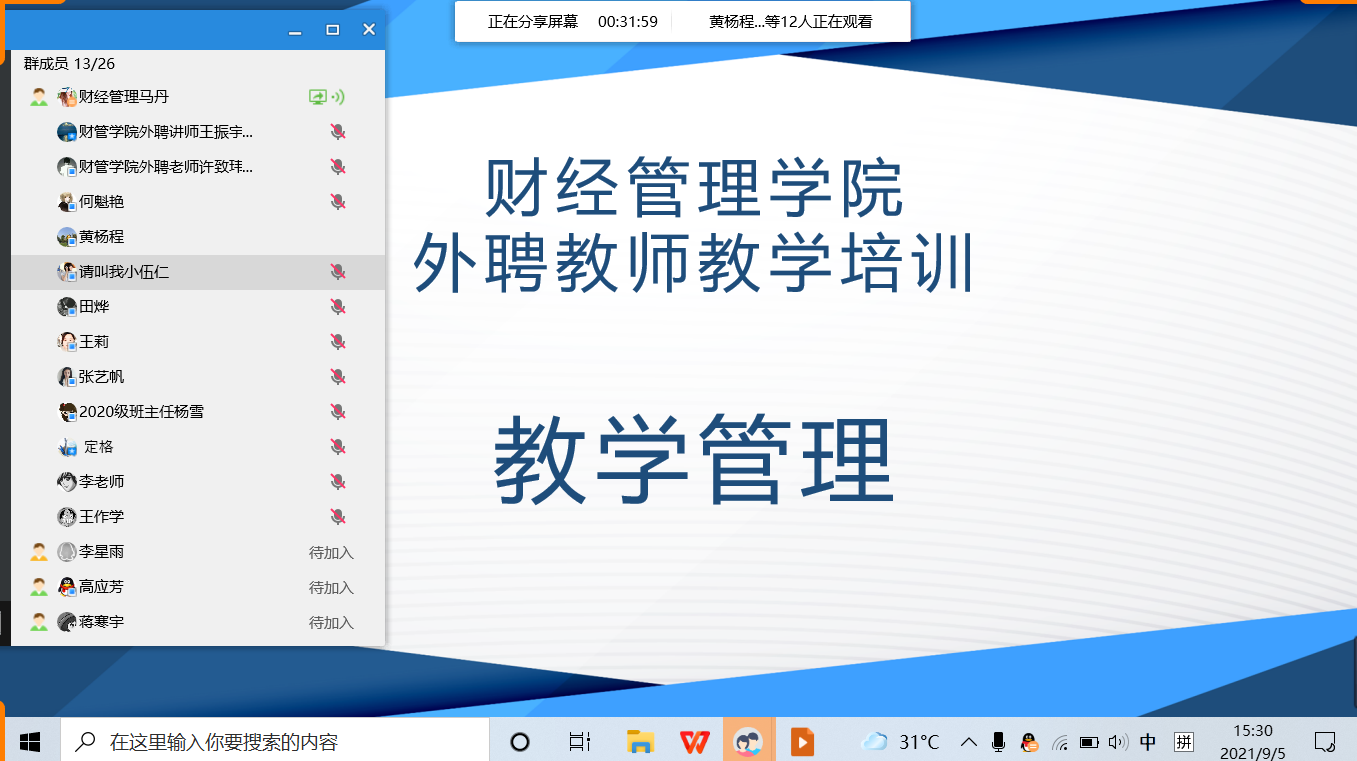 9月5日下午15:00,mksports恩波利质量与发展科开展外聘教师教学质量保障培训会议。为落实疫情防控要求,减少人员聚集,本次培训会议通过学院外聘教师联络QQ群在线培训,共计12名外聘教师参与。
