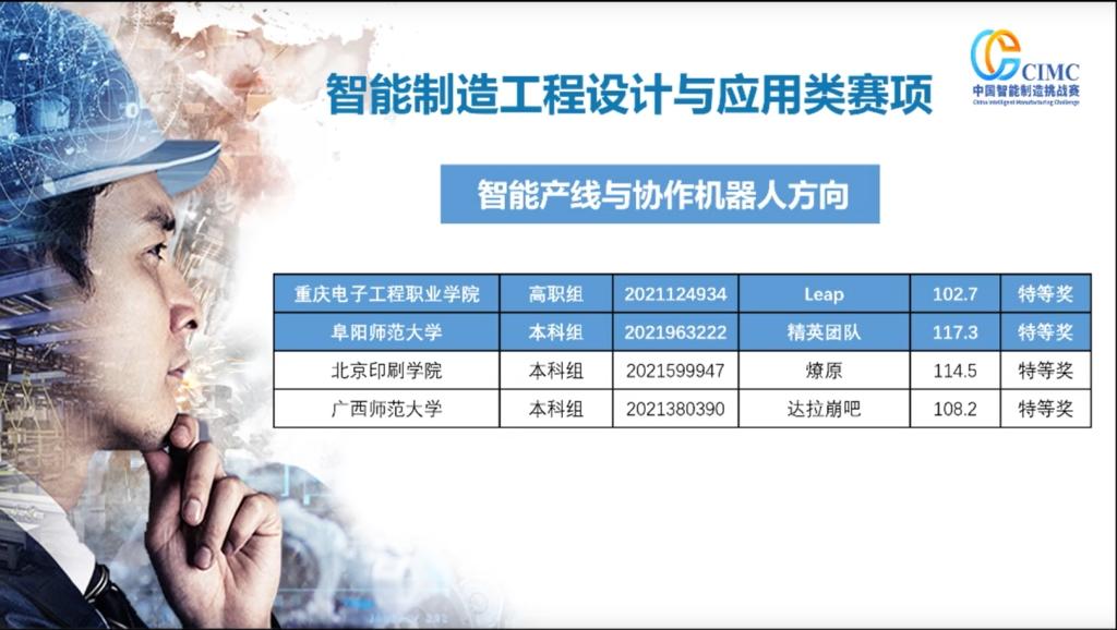2021年CIMC大赛,全国共有近700所高校6000支队伍的1万余名师生参赛,其中我校有3个学院共计17支队伍参赛。mksports恩波利依托现有的“协作机器人智能物流场景研发中心”实验室和“协作机器人智能物流场景应用”工匠工坊,选拔出5支队伍参加“智能产线与协作机器人”赛项,竞赛任务是基于协作型机器人,主题为人机协作方案的设计与实现。在全国初赛中,学院五支队伍获特等奖2项、一等奖1项、二等奖2项,获奖质量和数量在高职组均为第一,其中周远航、张家辉和蒋原欢组成的参赛队伍斩获全国初赛第一名,成功代表学校晋级全国总决赛。