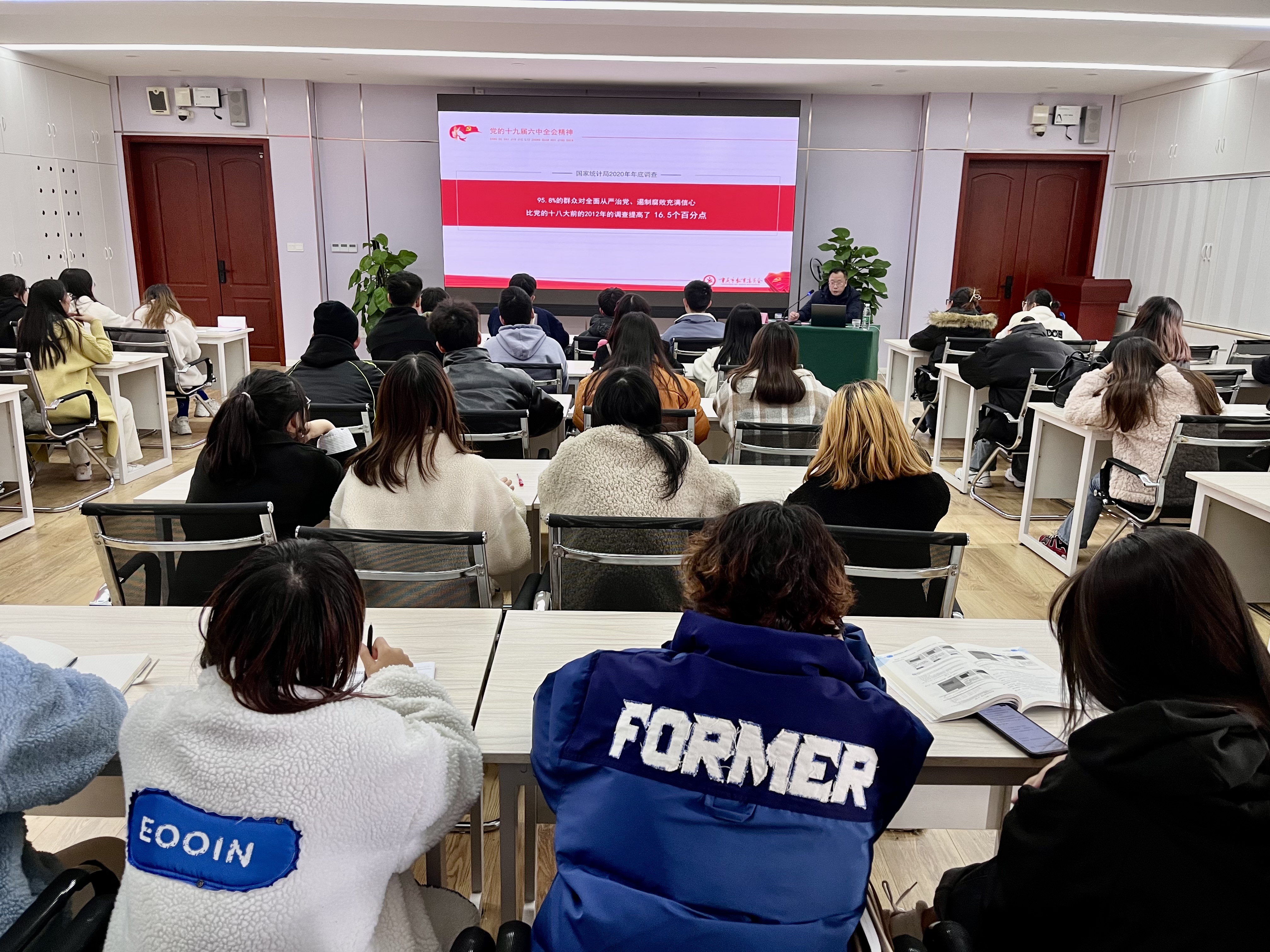 本次宣讲从深刻认识总结党的百年奋斗重大成就和历史经验的重大意义,深刻认识党的百年奋斗的初心使命和重大成就,深刻认识中国特色社会主义新时代的历史性成就和历史性变革,深刻认识以史为鉴、开创未来的重要要求,从党的百年奋斗历程中汲取智慧和力量等方面作了深入、全面、系统解读。同学们纷纷表示要深学细悟全会精神,从党的百年奋斗中汲取奋进力量,从重大成就、宝贵经验中读取成功密码,更加紧密地团结在以习近平同志为核心的党中央周围,全面贯彻习近平新时代中国特色社会主义思想,坚守初心使命,勇于担当作为,强化理论武装,学思践悟百年史,笃定实干新征程。继承发扬百年宝贵经验开创未来,为实现第二个百年奋斗目标、实现中华民族伟大复兴的中国梦而不懈奋斗。