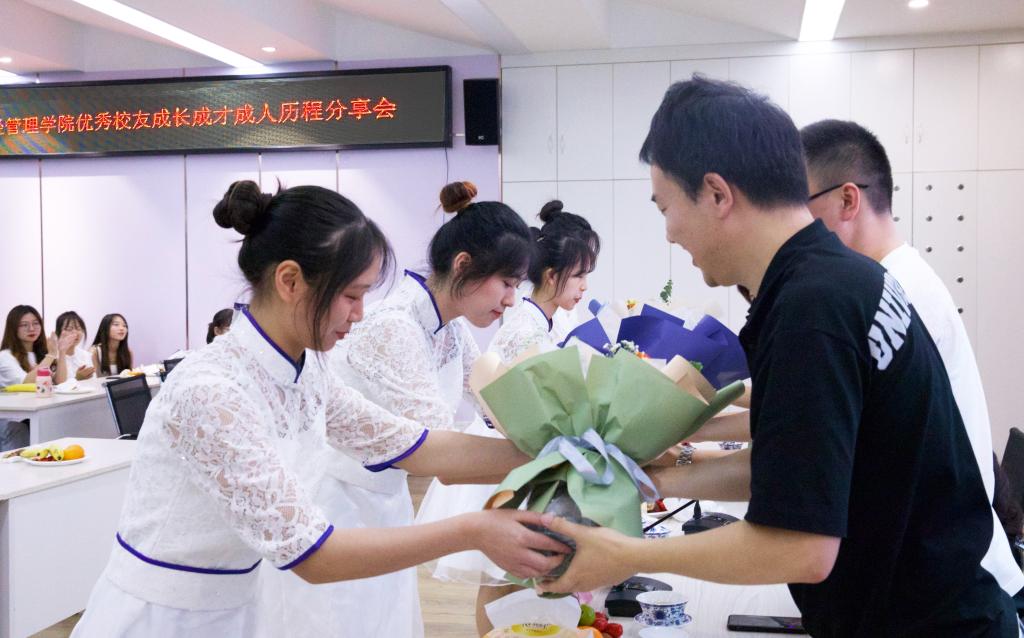 四位校友分别深情回顾了在母校读书学习生活的美好场景,并结合自身实际分享了学习、工作、生活经验,创业就业、实现自我的奋斗历程以及取得的成绩;勉励学弟学妹们珍惜资源、积极向上、不负期望,成为一名实现中华民族伟大复兴的贡献者。在互动交流学习环节,校友与学弟学妹们进行了积极的互动,详细回答了“如何解决资源能力不足问题”、“如何实现跨行业发展”等问题,把自己的经验总结倾囊相授给学弟学妹们。