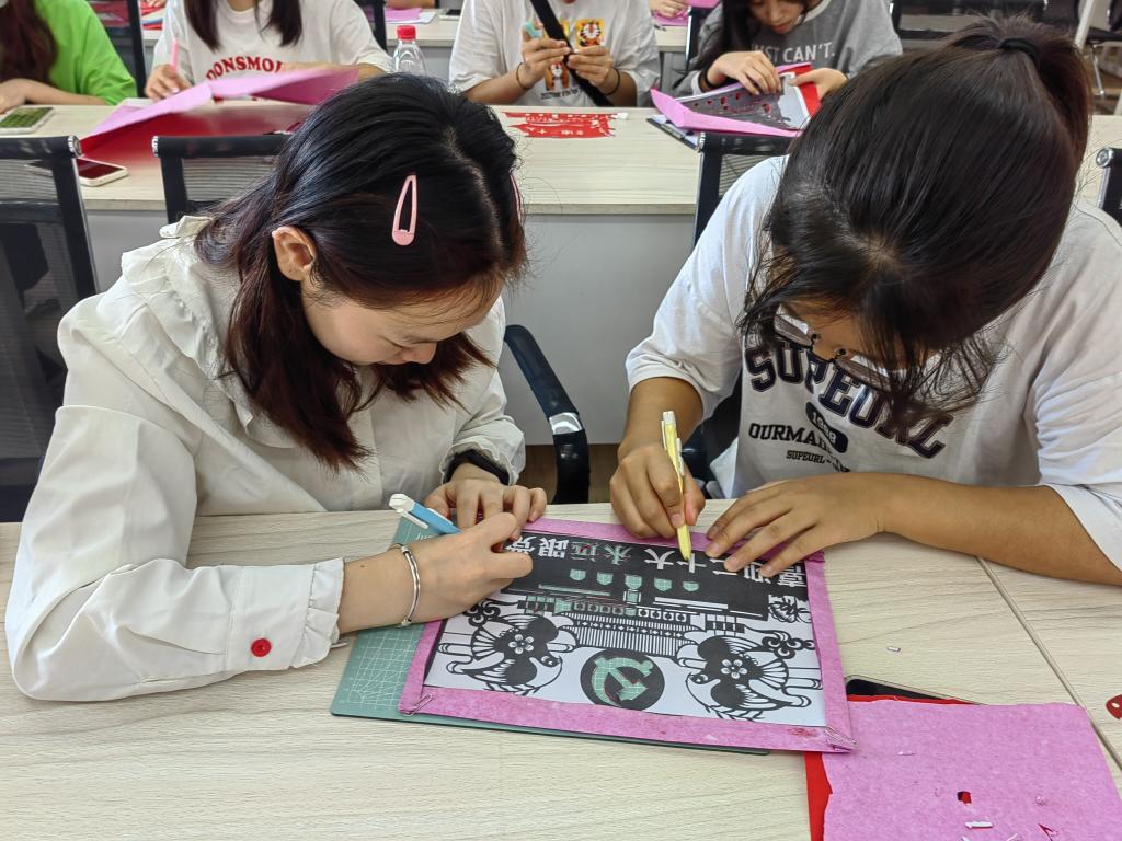 在剪纸活动中,同学们通过了解剪纸的悠久历史,深入体会了剪纸这一传统艺术的魅力,切实感受到了传统艺术运用在生活中所带来的审美情趣。大家尝试了单独纹样剪法、团花剪法等方法,聚精会神的精雕细琢,薄薄的红纸在学生手中游刃有余,刀锋过处线条显现,一张张普通的纸就变成了一幅幅精美灵动的剪纸作品,造型各异的图案从同学们的巧手中诞生。