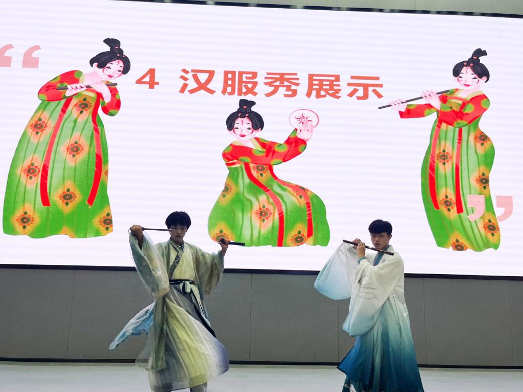 仪式最后一部分是汉服展示,汉服社的同学身着飘飘襦裙、翩翩长衣,进一步展示中华传统文化之“美”。
