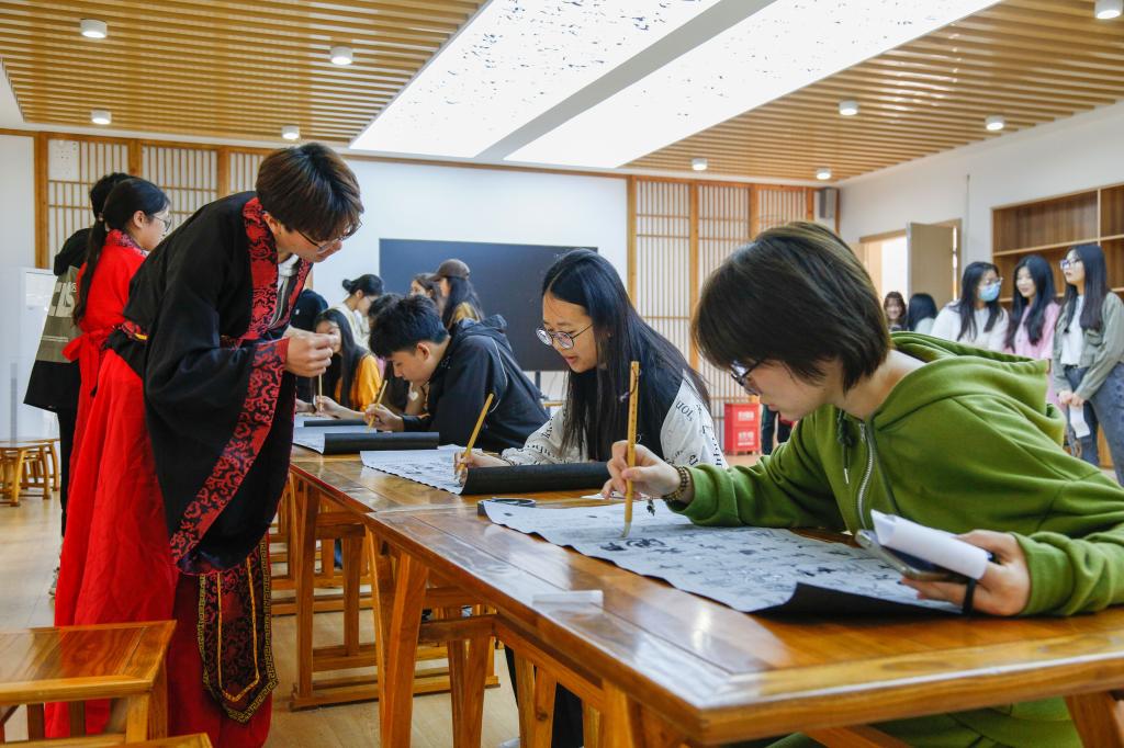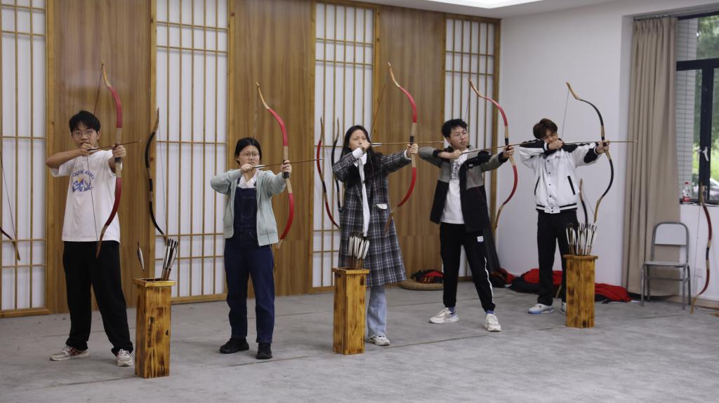 本次活动由六艺素质赋能课程组、六艺社团、汉服社共同自主设计编排,将传统礼、乐、射、御、书、数的六艺经典技艺与流行的“打卡”活动相结合,邀请全校师生共同沉浸式体验游玩。