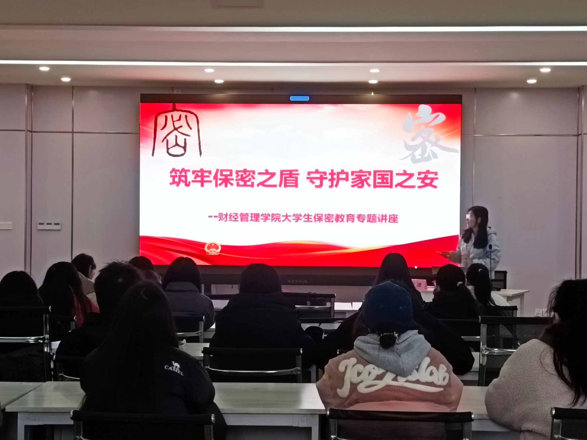张迪老师以“筑牢保密之盾,守护国家之安”为主题,从当前高校保密工作的严峻形势、保密工作的相关知识和新形势下做好保密工作的对策和建议三个方面,告诉青马学员:保密防线关乎国家兴衰,从军事机密到科技成果,泄密的蝴蝶效应可能动摇国家发展根基。作为新时代的中国青年,我们应该增强保密意识和防范能力,以实际行动诠释新时代大学生的家国情怀与使命担当。