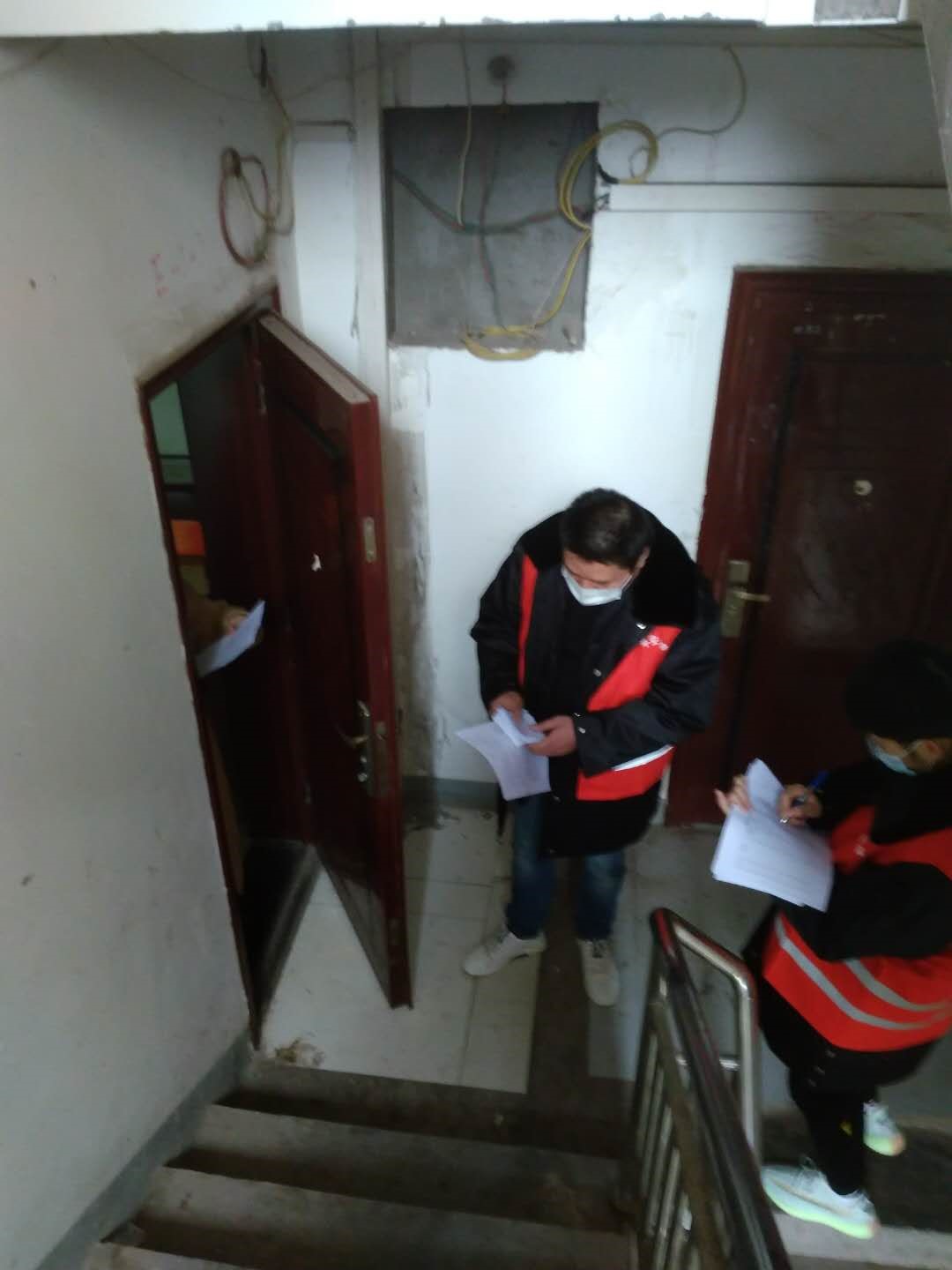 (图为李洪骏到居民楼统计健康信息)