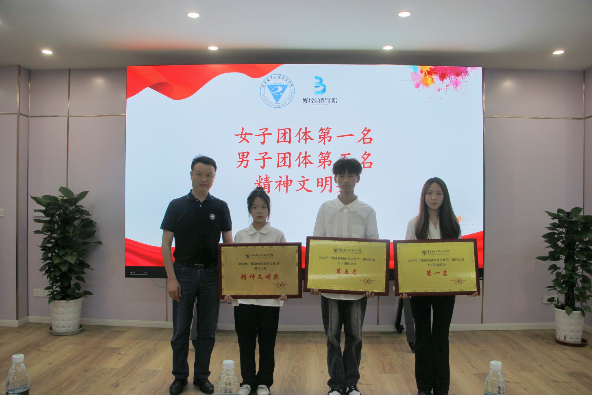 经过三天的激烈比拼,运动会已落下帷幕。学院取得教职工团体第三名,学生女子团体第一名,学生男子团体第五名的好成绩,并获得精神文明奖。与此同时,4月19日,学院在10-412会议室举行“2024年健康校园体育文化节”mksports恩波利田径运动会颁奖典礼,学院党总支书记蒋斌向各位参赛运动员取得的成绩表示祝贺,同时也感谢了本次运动会幕后工作人员的辛勤付出,他鼓励同学们继续发扬体育精神,将体育精神融入生活点滴,打造积极向上、勇敢坚毅的学院氛围。随后,主持人宣布获得文明团支部、优秀个人、优秀运动员表彰决定,老师们为获奖学生代表颁奖并合影留恋。