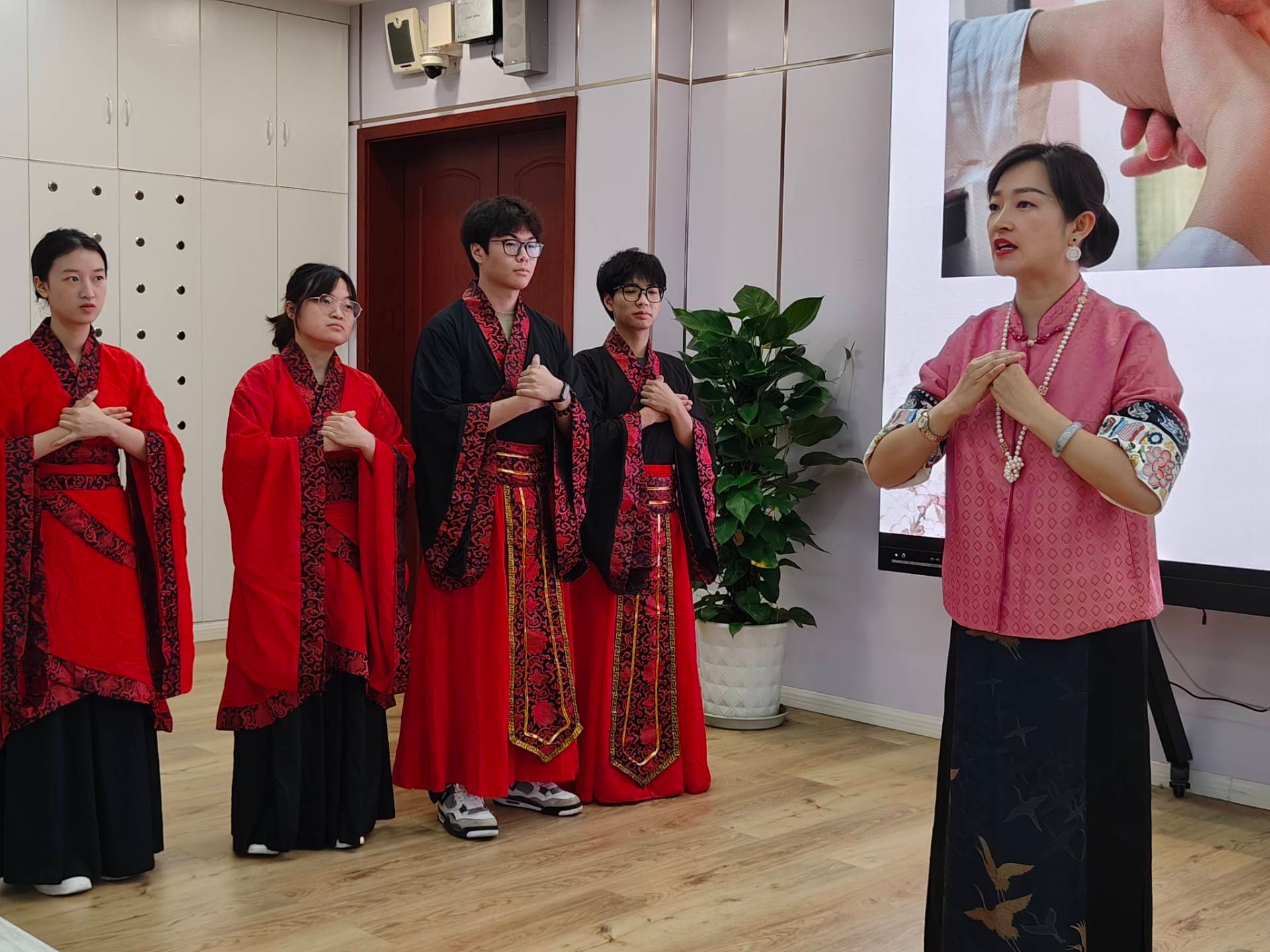 在培训结束之前,李老师还教“青马”学员学习关于礼仪的手语舞,李老师从“礼”出发,将中华优秀传统文化融入到日常生活中,让“青马”学员感受到了中华优秀传统文化的魅力,更好的领悟中国特色社会主义道路的历史纵深和文化根基。