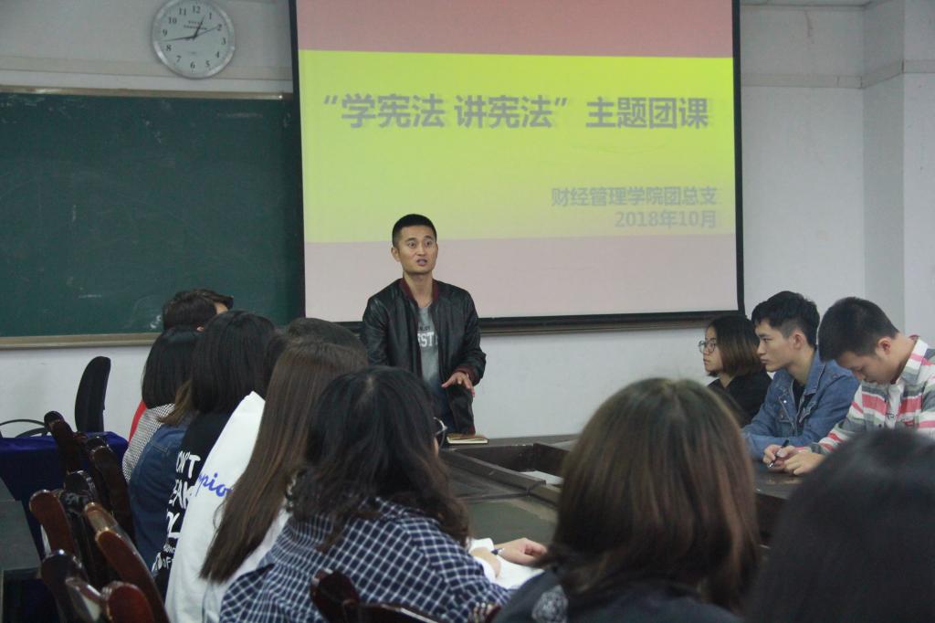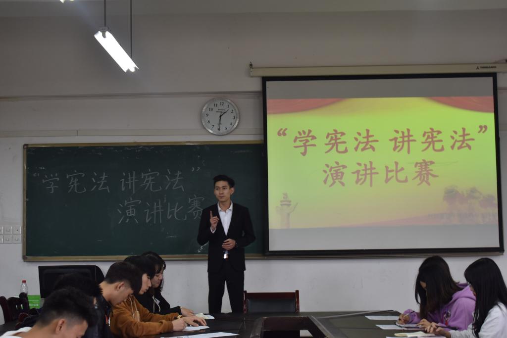 10月12日中午,学院团总支书记苏逸老师在北校区10-412教室对mksports恩波利第一届团总支学生会全部干部同学和学生党员进行了一次团课教育。以青年学生如何更好地“学宪法、讲宪法”为主题,结合目前热点的法制案例,与学院干部和党员同学一道,进行了一次深入的学习。10月14日晚,在学院班级例会中,辅导员、班主任老师向学院所有班级发出了“学宪法、讲宪法”的倡议和开展主题团组织生活要求。10月17日中午,在10-412教室学院举办了“学宪法,讲宪法”的主题演讲比赛。此次比赛共有35名同学上台演讲,同学们从1954产生的第一部宪法,讲到今年2018年的第五次宪法修订,从什么是宪法,怎么学宪法,讲到青年学生们如何讲好宪法,维护好宪法。活动现场营造出了崇尚宪法、遵守宪法、维护宪法权威的良好氛围。同时,学院也正在开展“学宪法、讲宪法”的主题征文比赛。相信,通过系列的讲座、学习、主题团组织生活、征文演讲等活动,此次宪法学习教育活动将在青年学生中引向深入。