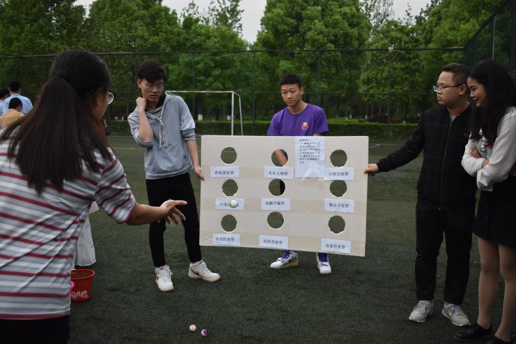 4月10日,在北区足球场举行的“普法教育趣味互动游戏”让学生对法律知识有了深刻的认识和理解。
