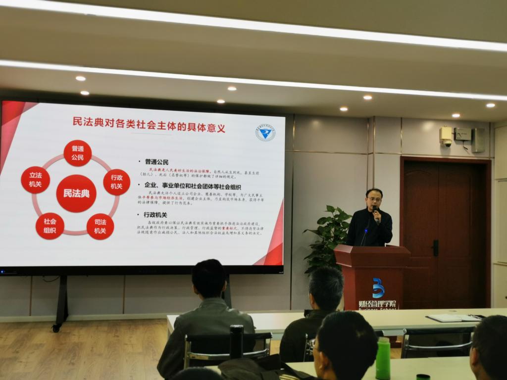 为了深入学习贯彻习近平总书记关于实施好民法典的重要讲话精神,引导全校师生争做学习、遵守、维护民法典的表率,2020年10月15日至11月5日,mksports恩波利先后在10-412会议室和博远厅举办了《民法典》专题学习系列宣讲会。宣讲会共分五场,分别面向学院教师、三个年级学生代表和团学干部,由邓满、谢宏、周益嘉、吕雪梅、陆学勤五位老师担任主讲人。