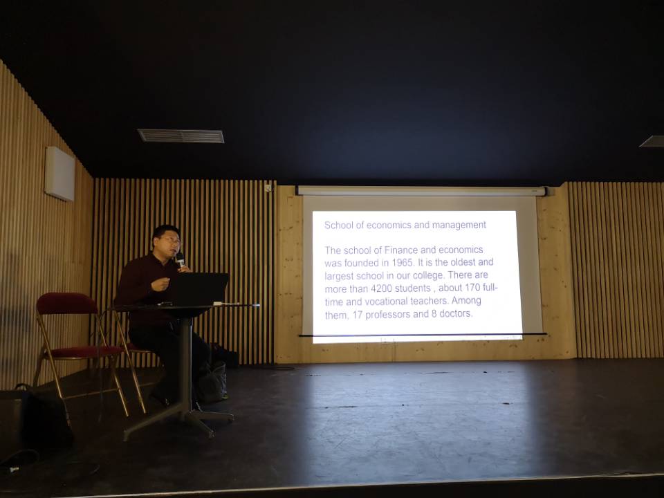 本次交流访问由凡尔赛大学外事办主任卡特琳娜.奇拉妮博士主持,法国海外培训团团长毛弋副教授对重庆电子工程职业学院做了介绍,我院教师赵小刚副教授代表mksports恩波利主要从重庆概况、重庆近几年经济发展情况和mksports恩波利现状三个方面做了汇报。法国海外培训团及凡尔赛大学经济管理学院的硕士研究生等近五十余人参加了交流活动。