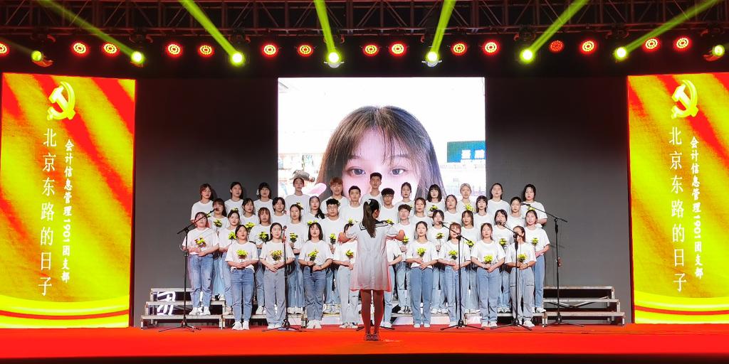 音乐会在曲目《国家》中拉开序幕,同学们用真挚生动的情感唱出了中华儿女爱党爱国的心声,深情的旋律将观众迅速带进热烈的氛围;曲目《黄河大合唱》,同学们用饱满的热情和嘹亮的歌声讴歌中国共产党带领中国人民取得的辉煌成就,将音乐会推向高潮;青年教师团支部满怀深情演唱歌曲《追寻》,场下掌声不断。一曲红歌就是一段鲜红的历史,在新时代重温、传唱红色经典歌曲,不仅是革命追忆、红色传承,更是坚定理想信念、厚植家国情怀。最终,电商1902团支部演唱曲目《黄河大合唱》、 财管2001团支部演唱曲目《游击队之歌》摘得桂冠,荣获一等奖。