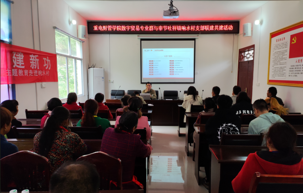 两天时间里,数字贸易第一党支部教师党员和学生代表与响水村党支部党员一起先后开展了学习贯彻习近平新时代中国特色社会主义思想主题教育专题党课及座谈交流;直播电商技能知识讲座,传授创业技能;讲红岩故事,忆红色历程;开展实地调研,详细了解响水村区域位置、人员结构、经济发展等基本情况及乡村振兴重点项目建设情况,并听取结对支部共建需求,共商联建事宜。多举措推进党建+乡村振兴的全链条深度融合,提升基层党建引领力与乡村振兴发展的内生动力,为新时代、新征程、新重庆的乡村振兴建设注入了强大的“红色动力”。