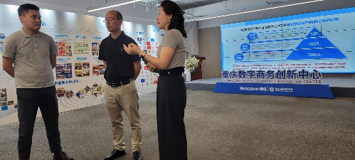 2025年6月27日,学院副院长汪启航一行调研重庆数字电子商务创新中心及重庆第一时间网络科技有限公司。双方基于腾讯微信电商生态优势,聚焦区域数字电商人才短缺问题,达成“政校企”三位一体合作意向。未来将通过引入全国知名品牌代播项目、共建校园实训基地、互派导师等方式,实现“课程知识+多模式实训”深度融合,打造从人才培养到产业服务的闭环生态。