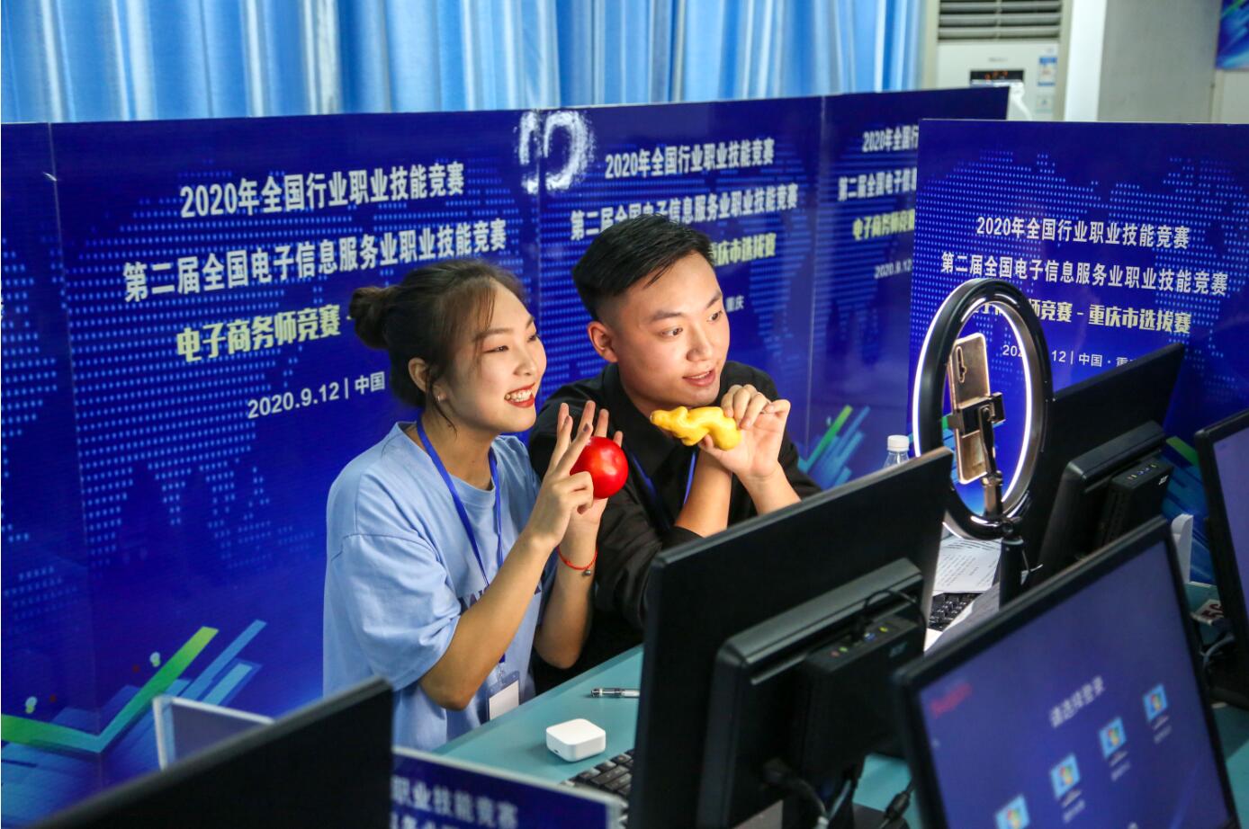 9月12日,2020年全国行业职业技能竞赛第二届全国电子信息服务业职业技能竞赛电子商务师竞赛重庆选拔赛在重庆城市管理职业学院落下帷幕。本次比赛分为学生组和职工组,共有来自重庆23所职业院校参加此次角逐。与以往电子商务竞赛不同的是,本届竞赛结合了当前电商发展的最新趋势,引入“直播带货”竞赛内容。选手们不仅要在给定资金范围内完成一家店铺的模拟推广;还需借助手机APP、美颜灯等专业直播工具,手拿西红柿、大姜这两......